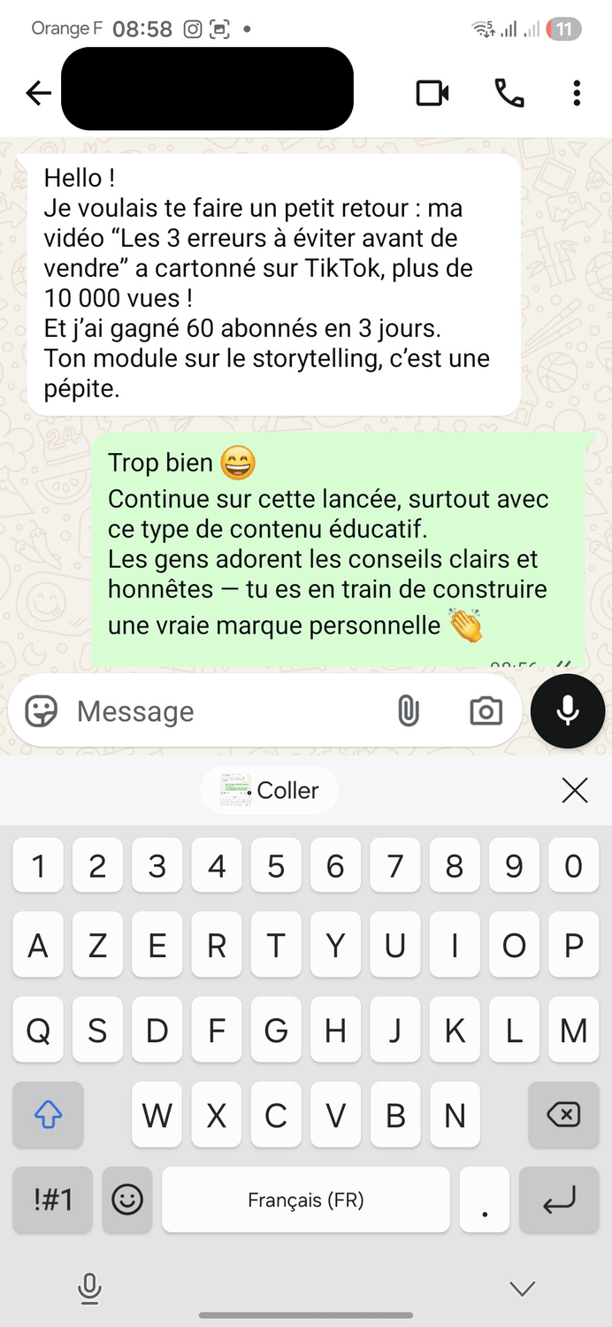 La formation est conçue pour être suivie à votre rythme, avec des contenus en vidéo courte, des exercices applicables immédiatement, et des sessions de coaching hebdo pour avancer efficacement sans surcharge.